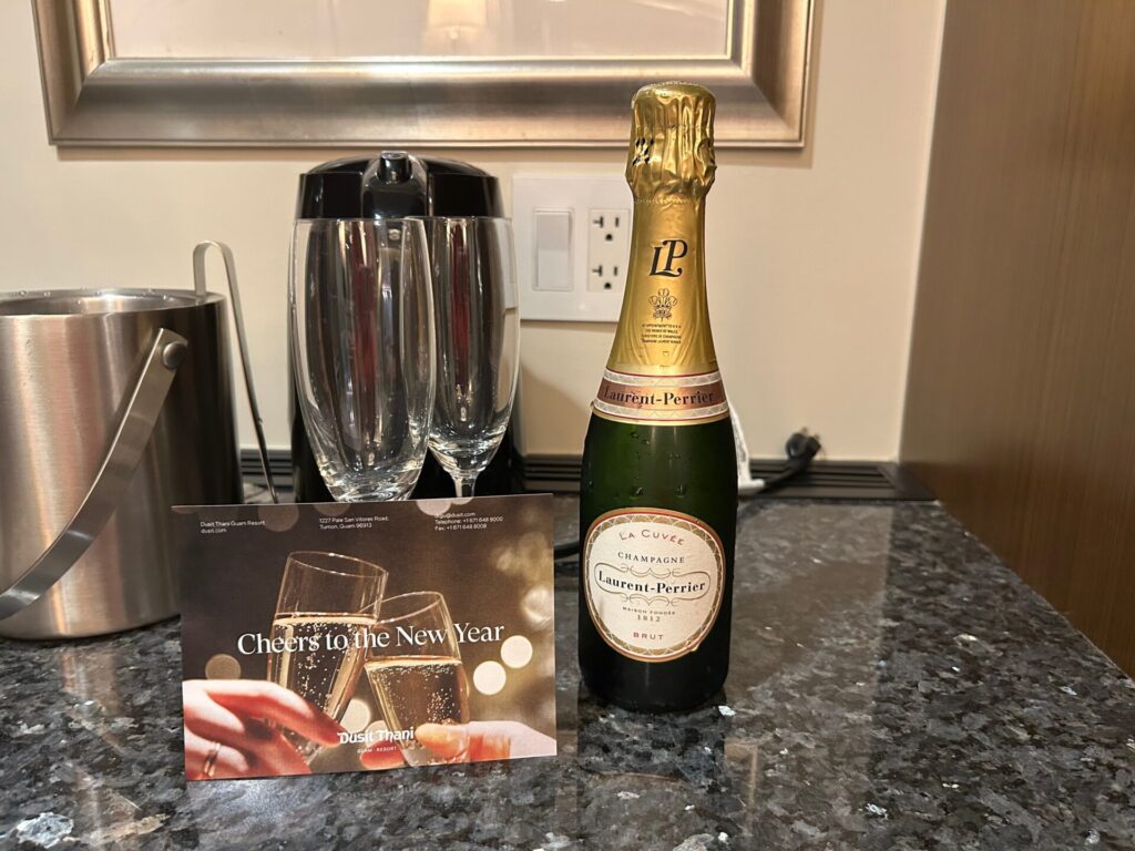 大晦日の夕方、お部屋のテレビで日本人らしく紅白を見ようかと言っていると(NHKワールドプレミアムが視聴できます)、ホテルからシャンパンのサービスが届きました。